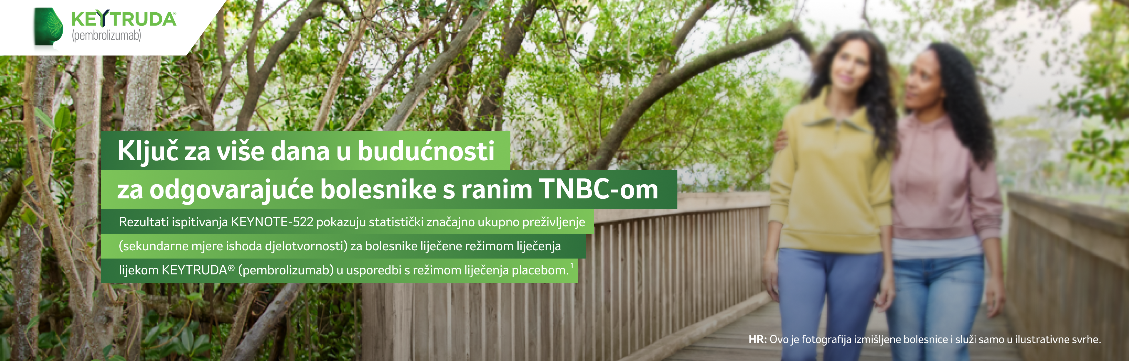 Lijek KEYTRUDA® (pembrolizumab), u kombinaciji s kemoterapijom kao neoadjuvantno liječenje nakon čega slijedi monoterapija kao adjuvantno liječenje nakon kirurškog zahvata, indiciran je za liječenje odraslih osoba s lokalno uznapredovalim ili ranim trostruko negativnim rakom dojke (TNBC) s visokim rizikom od recidiva.5